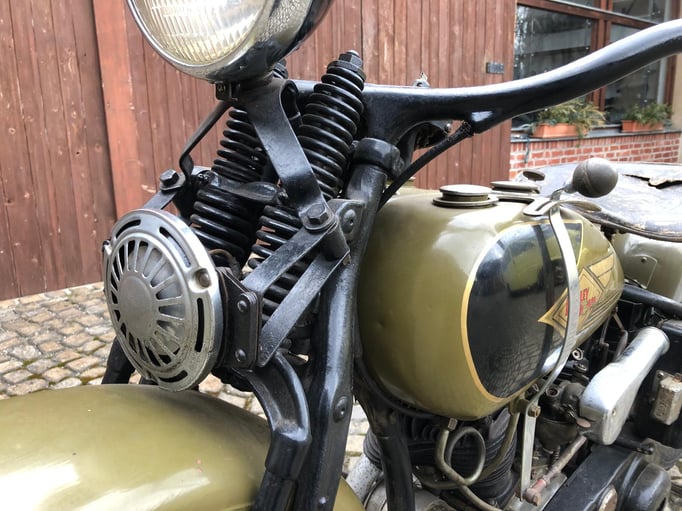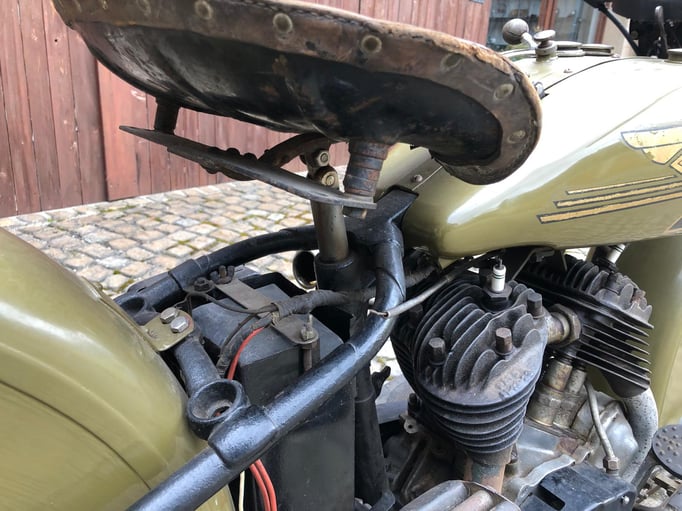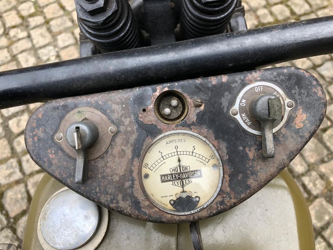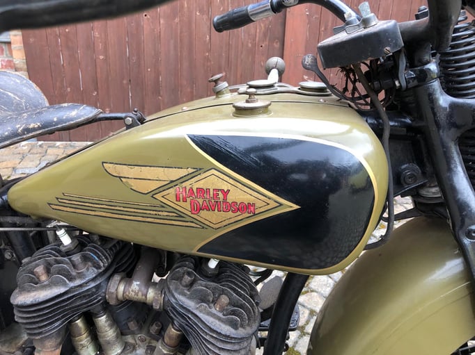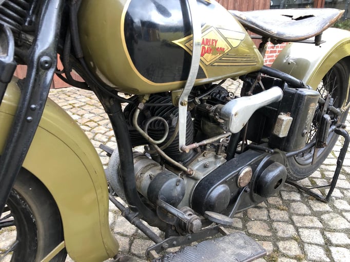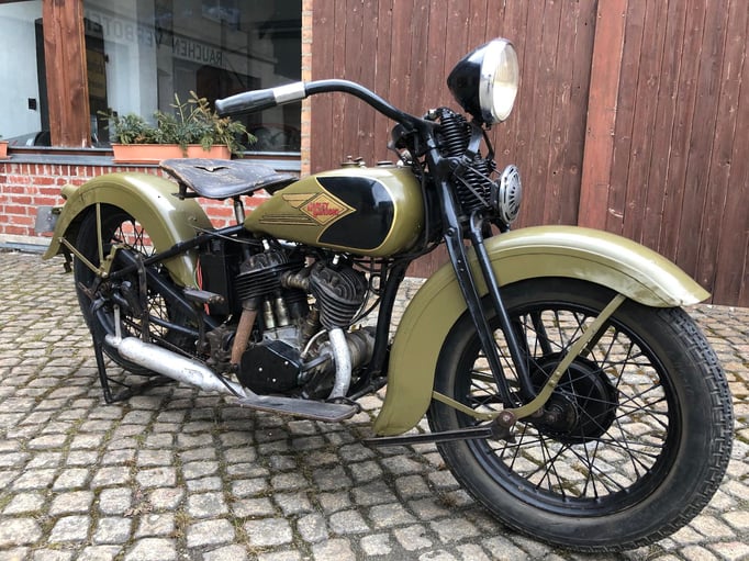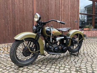Wir bieten Ihnen eine Harley Davidson 750 R - Bj. 1935 an. Es handelt sich hierbei um eine Harley Davidson aus einer Privatsammlung mit alten originalen Dokumenten. Letztmalig war die Harley in den 1950er Jahre angemeldet. Später wurde diese teilweise überstrichen. Der Motor dreht, das Getriebe schaltet. Keine Nachbauteile. Kleinigkeiten fehlen.
