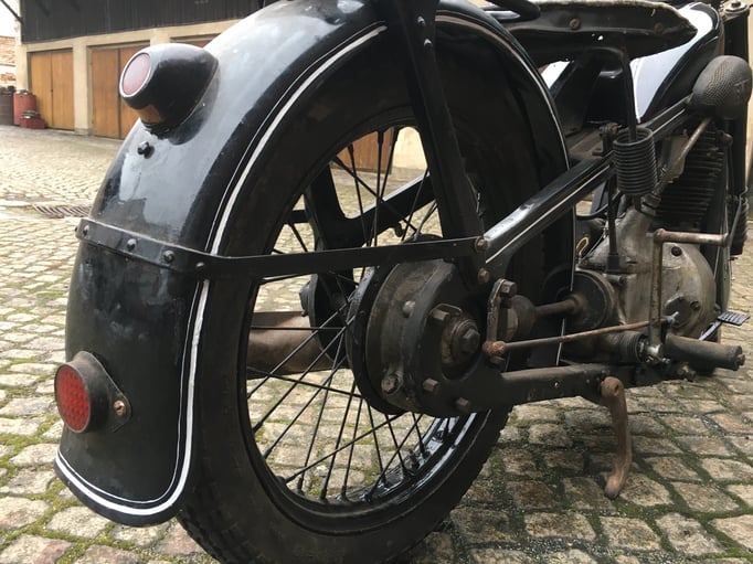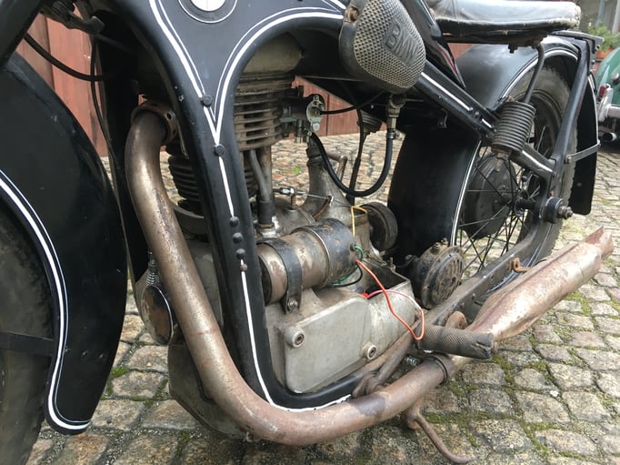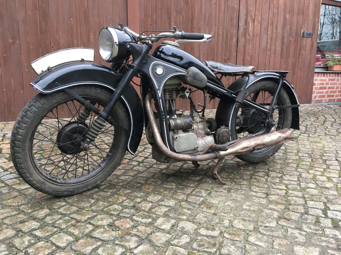 Wir bieten Ihnen eine schöne BMW R35 aus dem Jahr 1951 an. Das Motorrad fährt und die Beleuchtung funktioniert teilweise. Die Lichtmaschine lädt. Der km-Stand beträgt 33.400 km (abgelesen). Die BMW ist nicht nummerngleich. Dokumente sind keine vorhanden. Eine eid. Versicherung (Unbedenklichkeitserklärung gegenüber einer KFZ-Zulassungsstelle) vom Notar kann erbracht werden.