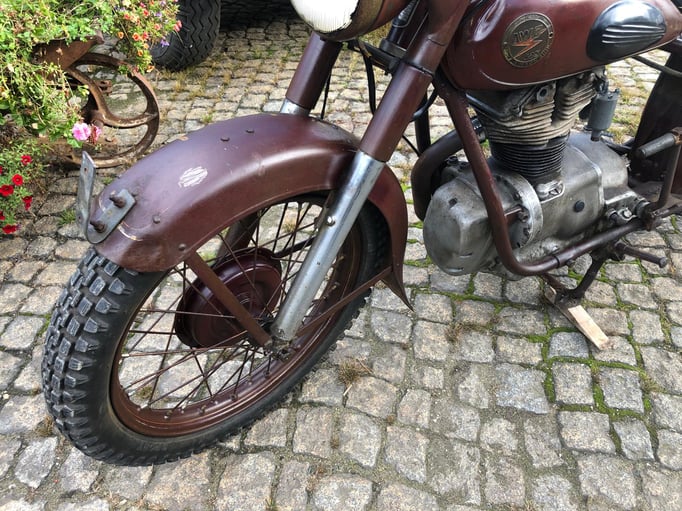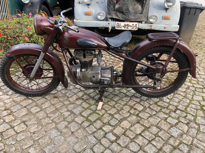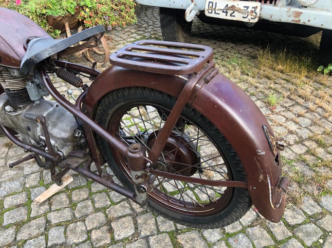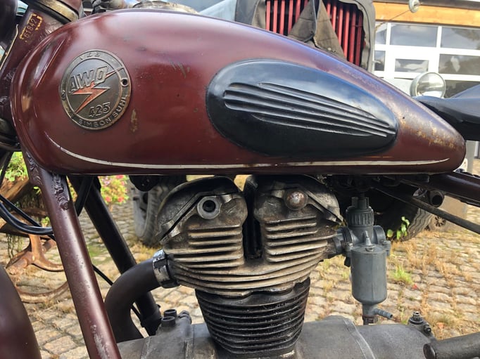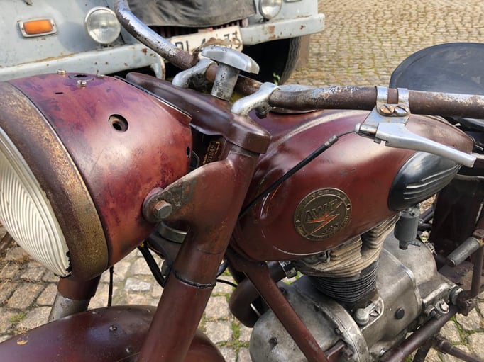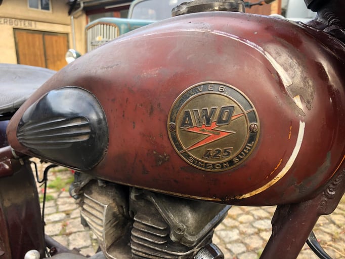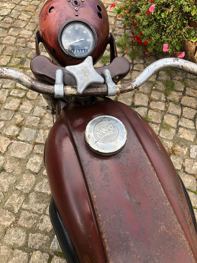 Die angebotene AWO bietet eine gute Basis für ein Patina-Motorrad. Die Technik muss