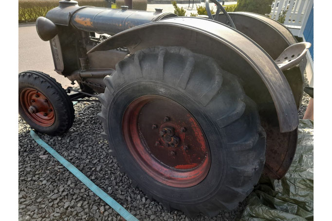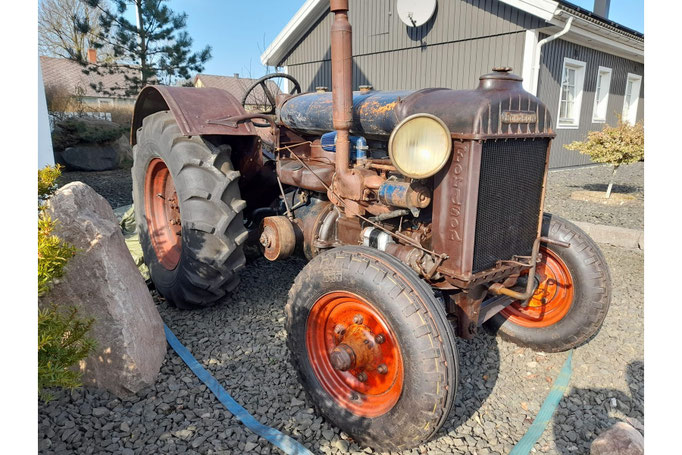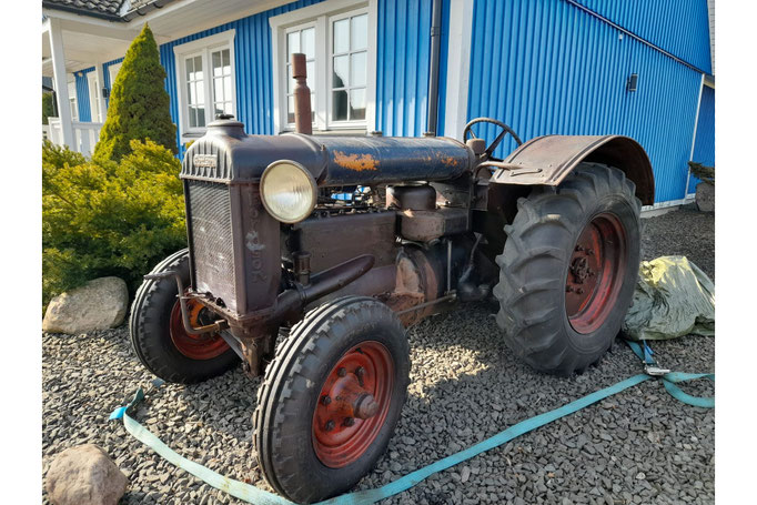 Wir bieten Ihnen einen Traktor Fordson N von 1936 mit Nebenantrieb an. Die Ventile / Motor wurde vom Vorbesitzer schon überarbeitet. Der Magnet muss überarbeitet werden. Hier kommt ein schwacher Zündfunke. Die Reifen vorn sind neu, hinten porös, jedoch verwendbar.