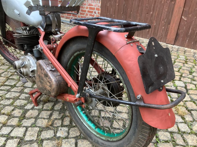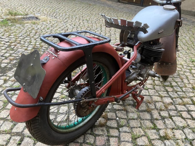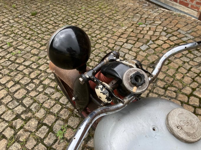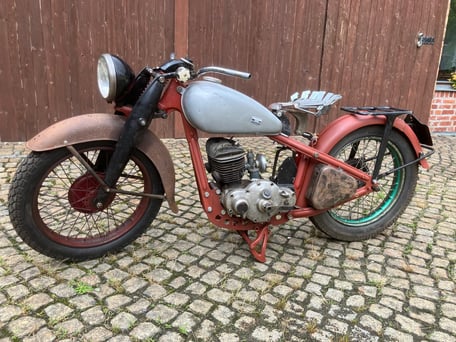 Wir bieten Ihnen eine DKW SB 500 von 1939 (EZ: 08.04.1939) zum Restaurieren an. Es handelt sich hierbei um ein angefangenes Projekt. Das Motorrad besitzt alte Dokumente. Einige Teile fehlen. Der Verkauf erfolgt wie auf den Bildern, incl. abgebildeter Teile (Kiste).