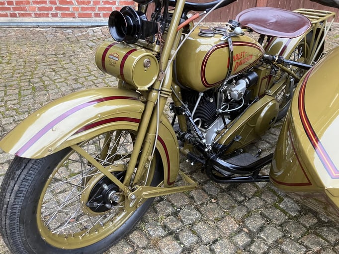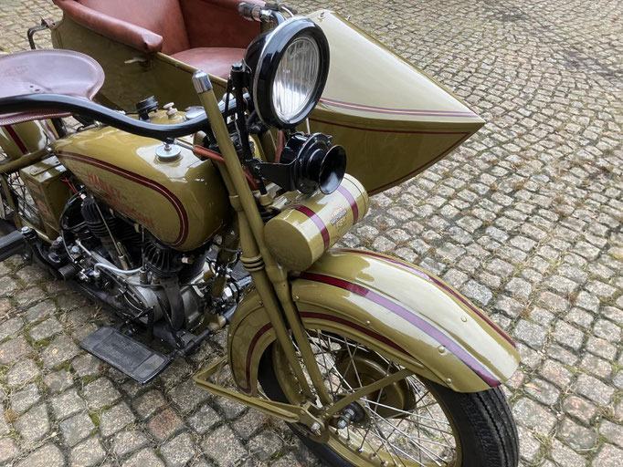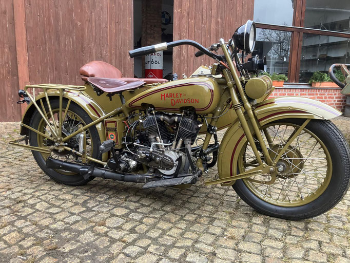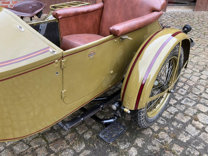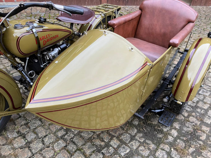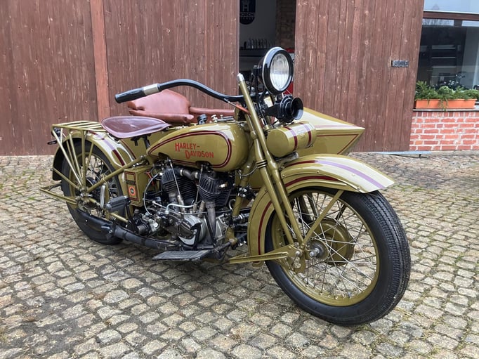 Wir bieten Ihnen dieses wunderschöne Harley Davidson Gespann von 1928 an. Das Motorrad wurde vor einigen Jahren hochwertig restauriert und besonders schön lackiert. Die Historie ist seit 1928 mit alten Dokumenten belegt.