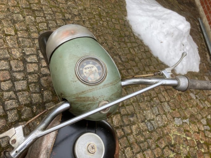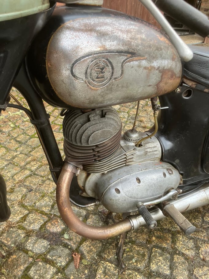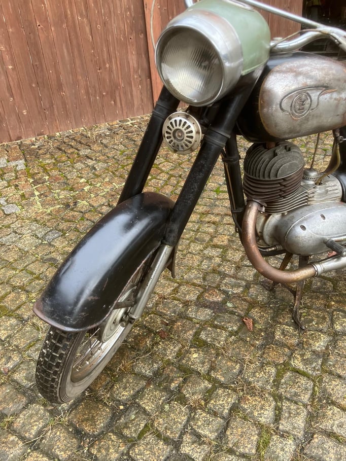 Wir bieten Ihnen diese CZ 150 von 1961 an. Der Tacho zeigt 66.365km an. Der Motor dreht, das Getriebe schaltet. Zum Motorrad gibt es eine eid. Versicherung vom Vorbesitzer zur Vorlage bei der KFZ - Zulassungsbehörde mit dazu