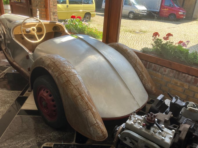 Wir bieten Ihnen diesen sehr schönen Adler Trumpf Junior Sport zum Restaurieren an. Die Karosserie ist zum größten Teil neu gefertigt. Der Wagen ist weitgehende vollständig, einige Teile sind auch mehrfach vorhanden.