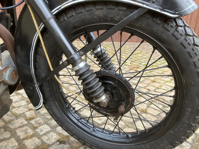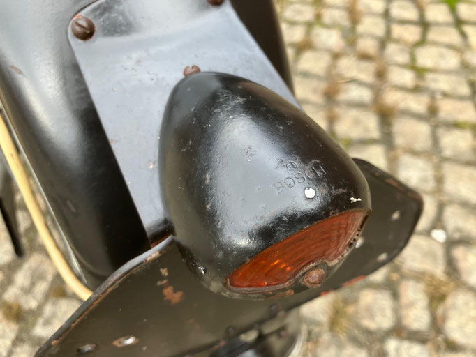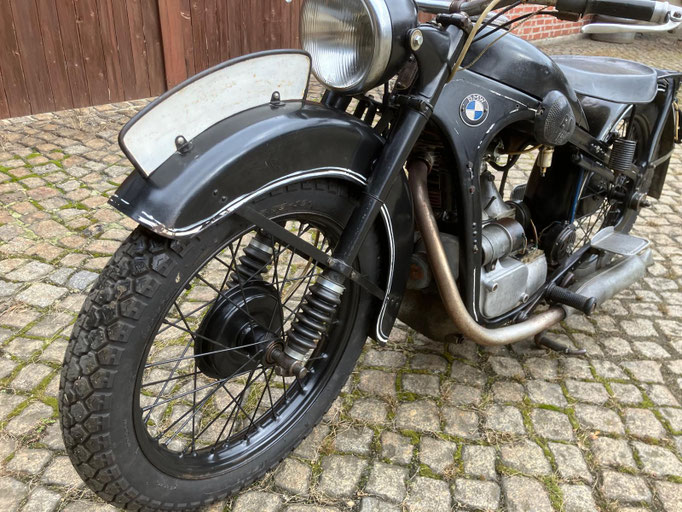 Wir bieten Ihnen diese BMW R35 von 1950 an. Es handelt sich hierbei um eine schöne alte BMW im unrestaurierten, fahrbereiten Zustand. Alles funktioniert. Die Gänge schalten gut, die Lichtmaschine lädt. Einige Zierlinien wurden in früherer Zeit einmal nachgezogen.